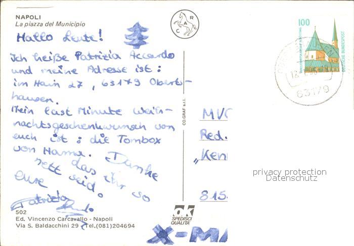 old postcard Napoli Neapel La piazza del Municipio postalisch gelaufen Erhaltung siehe scans