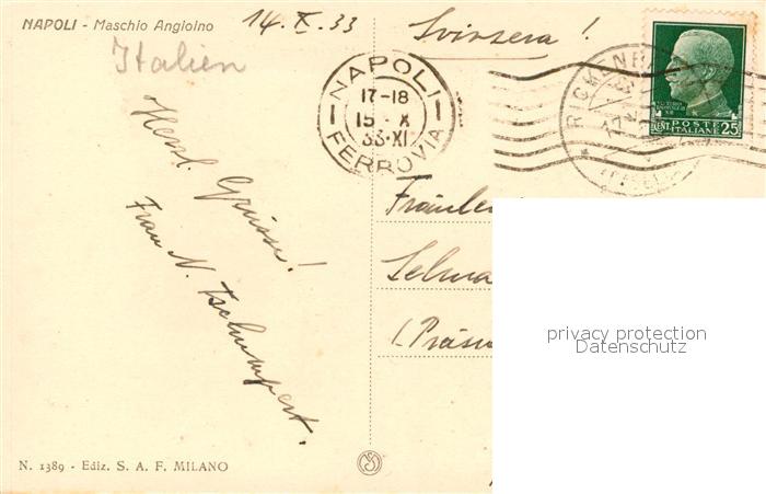 old postcard Napoli Neapel Maschio Angioino postalisch gelaufen Erhaltung siehe scans [PaolaD17]
