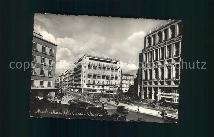 old postcard Napoli Neapel Piazza della Carita Via Roma postalisch gelaufen Erhaltung siehe scans