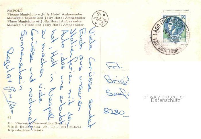 old postcard Napoli Neapel Piazza Municipio Jolly Hotel Ambassador postalisch gelaufen Erhaltung siehe scans [KathaD81]