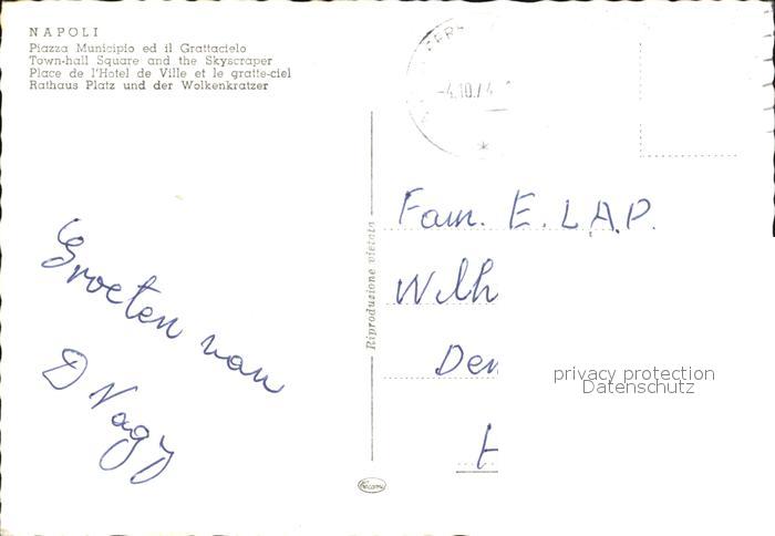 old postcard Napoli Neapel Rathausplatz Wolkenkratzer postalisch gelaufen Erhaltung siehe scans