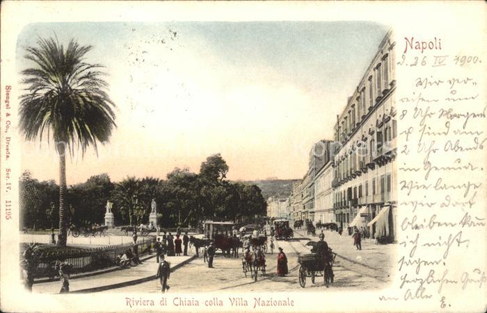 old postcard Napoli Neapel Riviera di Chiaia colla Villa nazionale postalisch gelaufen Erhaltung siehe scans
