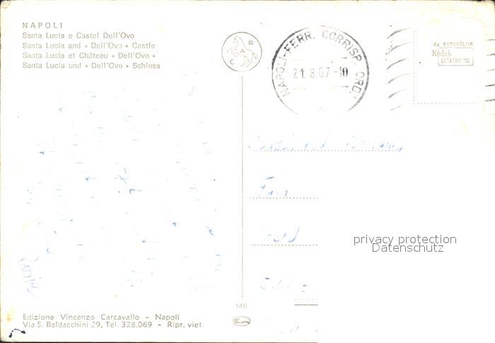 old postcard Napoli Neapel Santa Lucia Dell Ovo Schloss postalisch gelaufen Erhaltung siehe scans