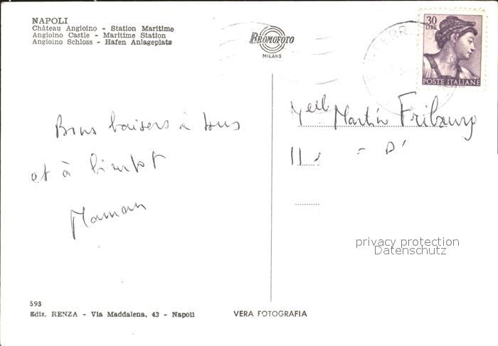 old postcard Napoli Neapel Stazione Maritima e Maschio Angioino postalisch gelaufen