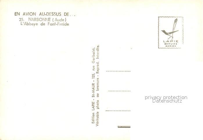 13071542 Narbonne Aude Abbaye de Font Froide postalisch nicht gelaufen Erhaltung siehe scans [WerneD78] KatCode: 11170011311262