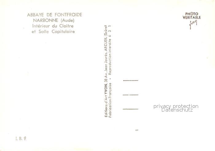 12941768 Narbonne Aude Abbaye de Fontfroide Interieur du Cloitre et Salle Capitulaire postalisch nicht gelaufen Erhaltung siehe scans [WerneD78] KatCode: 11170011311262