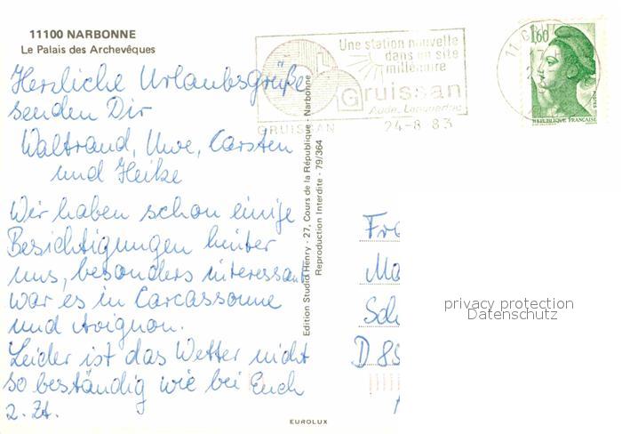 12880910 carte postale Narbonne Aude Fliegeraufnahme Palais des Archeveques postalisch gelaufen Erhaltung siehe scans [KathaD81] KatCode: 11170011311262
