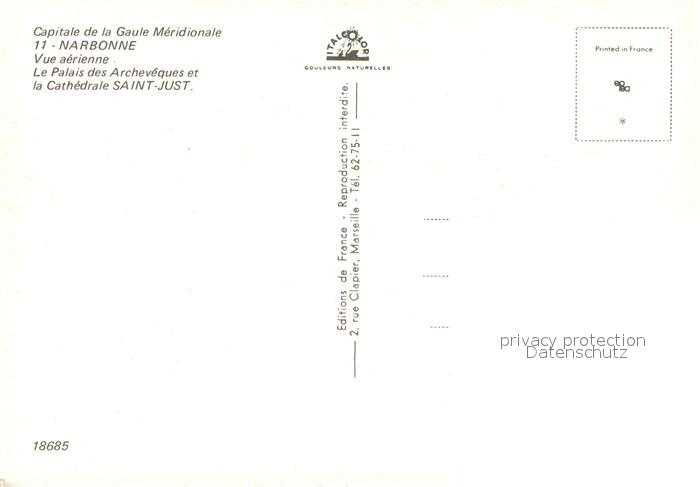 13595099 Narbonne Aude Le Palais des Archeveques et la Cathedrale Saint Just Vue aerienne postalisch nicht gelaufen Erhaltung siehe scans [WerneD78] Wern Katcode 11170011311262