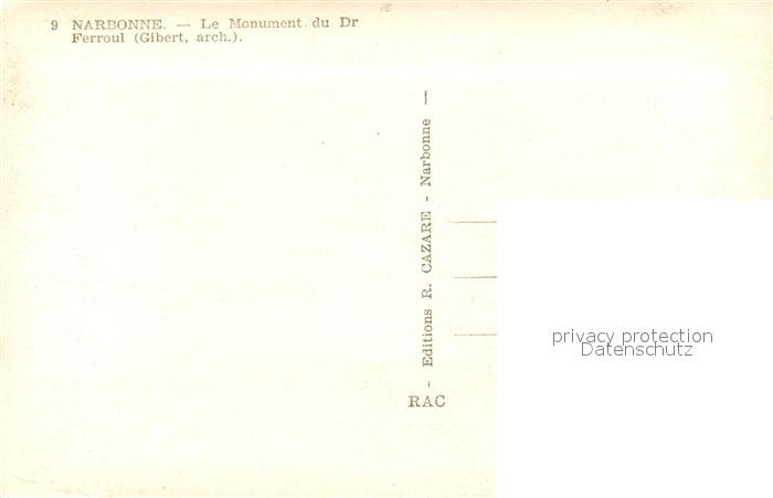 13535444 Narbonne Aude Monument du Dr. Ferroul postalisch nicht gelaufen Erhaltung siehe scans [LiesaD40] KatCode: 11170011311262