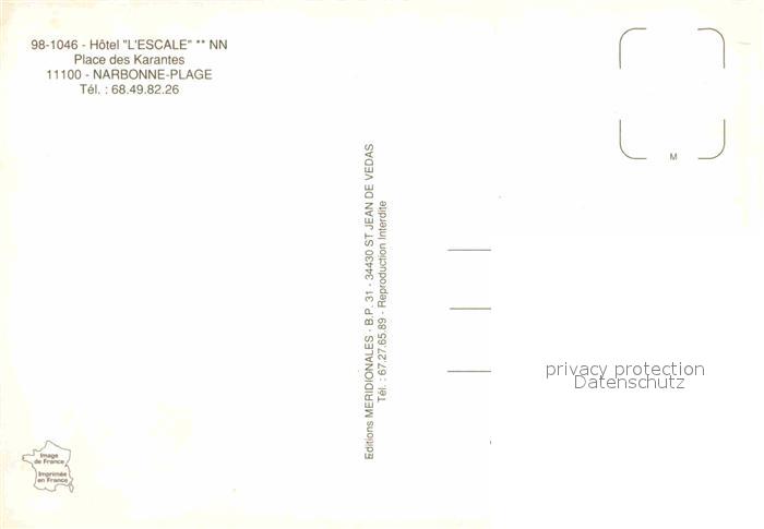 12754964 Narbonne Plage Hotel L’Escale postalisch nicht gelaufen Erhaltung siehe scans [AndreD76] KatCode: 11170011311262