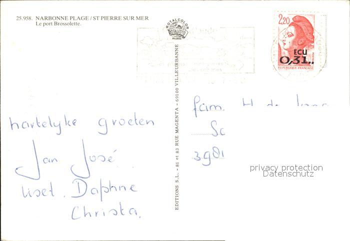 12520973 carte postale Narbonne Plage Saint Pierre sur Mer Hafen Brossolette postalisch gelaufen Erhaltung siehe scans KatCode: 11170011311262