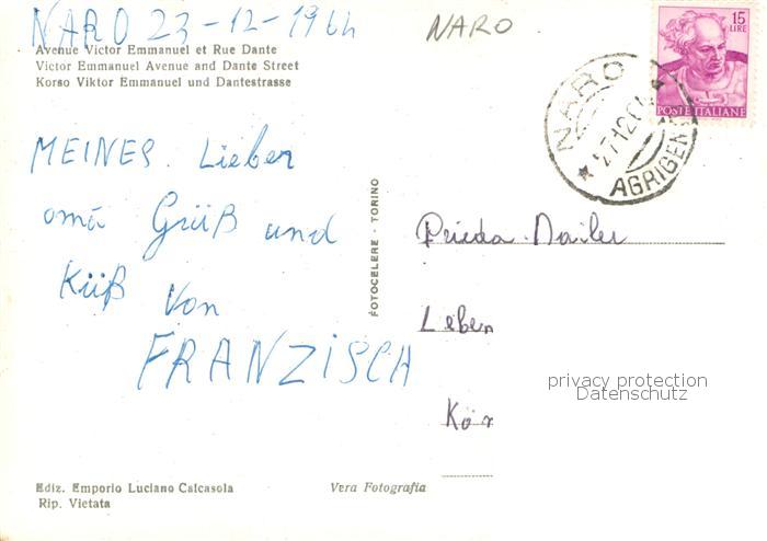 73769743 Naro Corso Vittorio Emanuele e Via Dante postalisch gelaufen Erhaltung siehe scans [FriedD77] old postcard Frie Katcode 11240