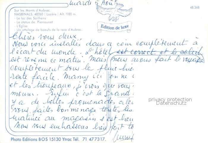 13585731 Nasbinals Lac des Sailhens Eglise Statue de Pierrounet postalisch nicht gelaufen Erhaltung siehe scans [PaolaD17] Paol Katcode 11170048248104