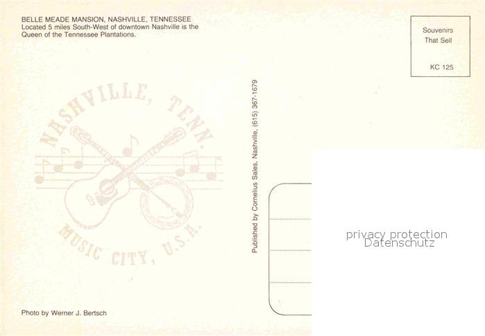 72706887 Nashville Tennessee Belle Meade Manison postalisch nicht gelaufen Erhaltung siehe scans [AndreD76] KatCode: 14140450000000