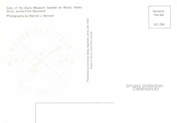 72706856 Nashville Tennessee Cars of the Stars Museum postalisch nicht gelaufen Erhaltung siehe scans [AndreD76] KatCode: 14140450000000
