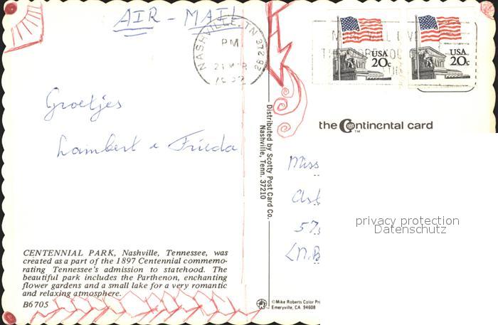 72331950 old postcard Nashville Tennessee Centennial Park postalisch gelaufen Erhaltung siehe scans KatCode: 14140450000000