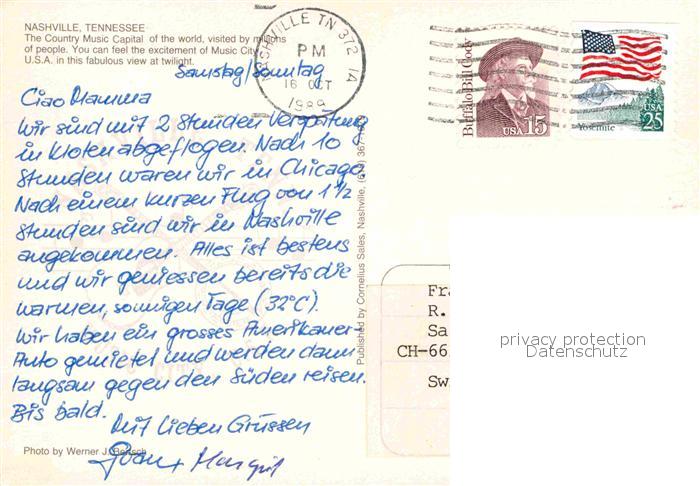 72706837 old postcard Nashville Tennessee Skyline postalisch gelaufen Erhaltung siehe scans [AndreD76] KatCode: 14140450000000