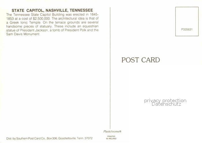 72706884 Nashville Tennessee State Capitol postalisch nicht gelaufen Erhaltung siehe scans [AndreD76] KatCode: 14140450000000