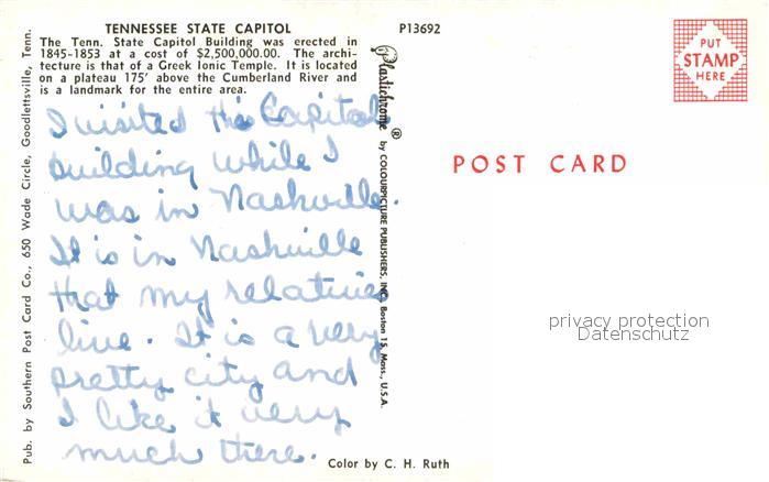 72756861 Nashville Tennessee Tennessee State Capitol postalisch nicht gelaufen Erhaltung siehe scans [NatalD47] KatCode: 14140450000000