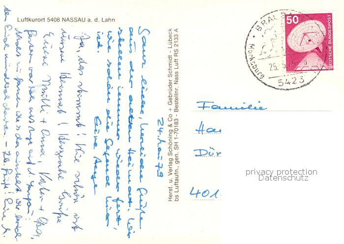 73209892 alte Postkarte Nassau Bad Fliegeraufnahme postalisch gelaufen Erhaltung siehe scans [WerneD78] KatCode: 11110007141091