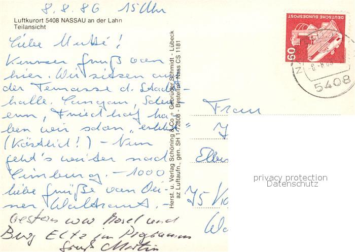73211799 alte Postkarte Nassau Bad Fliegeraufnahme mit Schloss postalisch gelaufen Erhaltung siehe scans [WerneD78] KatCode: 11110007141091