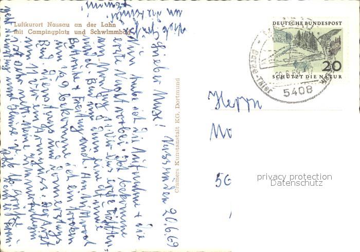 72109558 alte Postkarte Nassau Bad Fliegeraufnahme mit Schwimmbad postalisch gelaufen Erhaltung siehe scans KatCode: 11110007141091