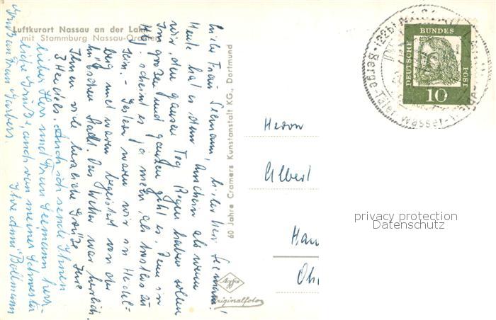 73763500 alte Postkarte Nassau Bad Fliegeraufnahme mit Stammburg Nassau Oranien postalisch gelaufen Erhaltung siehe scans [FriedD77] KatCode: 11110007141091