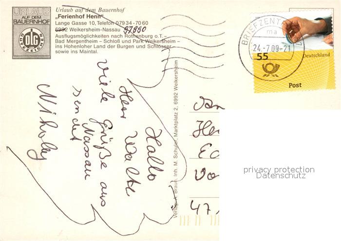 73082501 alte Postkarte Nassau Bad Mergentheim Ferienhof Henn postalisch gelaufen Erhaltung siehe scans [KathaD81] KatCode: 11110008128126