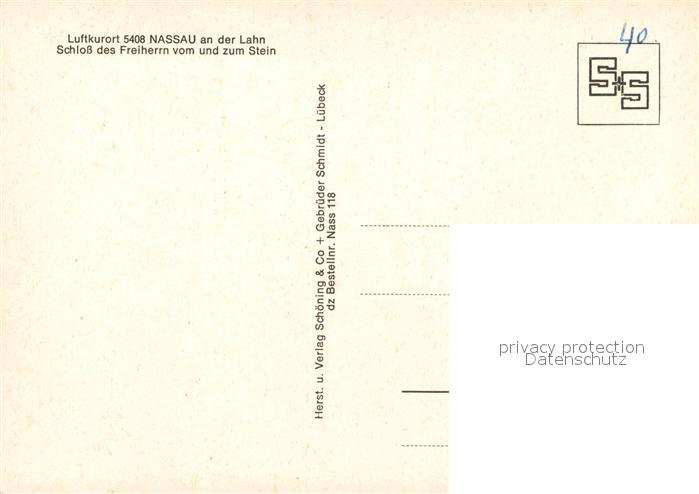 73213734 Nassau Bad Schloss des Freiherrn vom und zum Stein postalisch nicht gelaufen Erhaltung siehe scans [WerneD78] KatCode: 11110007141091