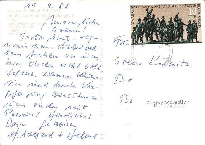 71935133 alte Postkarte Nassau Brand-Erbisdorf Freibad Polytech Oberschule Rat der Gemeinde Kinderkrippe postalisch gelaufen Erhaltung siehe scans KatCode: 11110014177030