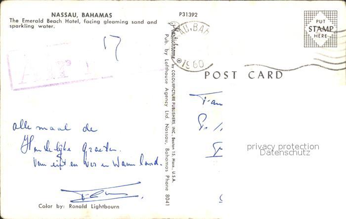 alte Postkarte Nassau City Emerald Beach Hotel postalisch gelaufen Erhaltung siehe scans