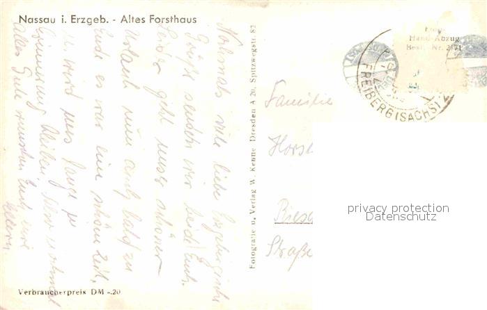 72640274 alte Postkarte Nassau Erzgebirge Altes Forsthaus postalisch gelaufen Erhaltung siehe scans [WerneD78] KatCode: 11110014177140