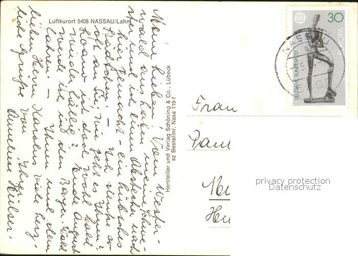 72578758 alte Postkarte Nassau Lahn Brueckenpartie postalisch gelaufen Erhaltung siehe scans [LiesaD40] KatCode: 11110007141091