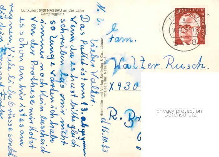 73828647 alte Postkarte Nassau Lahn Campingplatz Fliegeraufnahme postalisch gelaufen Erhaltung siehe scans [WerneD78] KatCode: 11110007141091