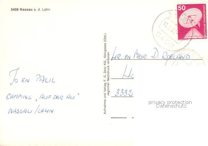 72942086 alte Postkarte Nassau Lahn Fliegeraufnahme postalisch gelaufen Erhaltung siehe scans [FriedD77] KatCode: 11110007141091