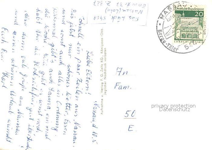 73284931 alte Postkarte Nassau Lahn Fliegeraufnahme Fachwerk Bruecke postalisch gelaufen Erhaltung siehe scans [LiesaD40] KatCode: 11110007141091