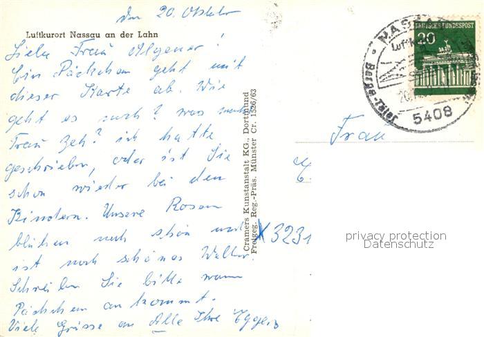72987664 alte Postkarte Nassau Lahn Fliegeraufnahme Lahnpartie postalisch gelaufen Erhaltung siehe scans [LiesaD40] KatCode: 11110007141091