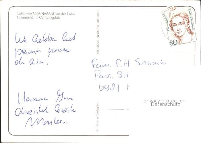 72255393 alte Postkarte Nassau Lahn Fliegeraufnahme mit Camping und Lahn postalisch gelaufen Erhaltung siehe scans KatCode: 11110007141091