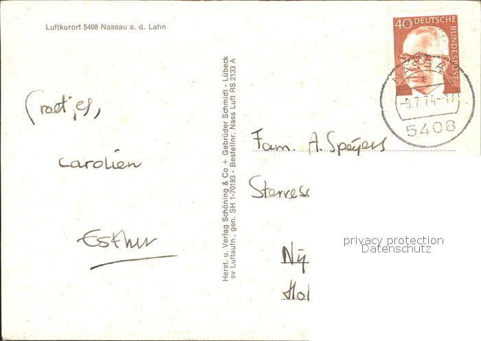72287990 alte Postkarte Nassau Lahn Fliegeraufnahme mit Lahn postalisch gelaufen Erhaltung siehe scans KatCode: 11110007141091