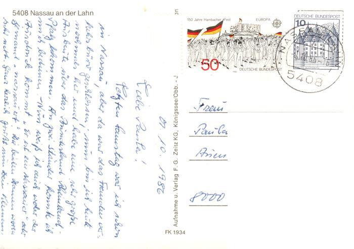 73878444 alte Postkarte Nassau Lahn Fliegeraufnahme postalisch gelaufen Erhaltung siehe scans [WerneD78] KatCode: 11110007141091