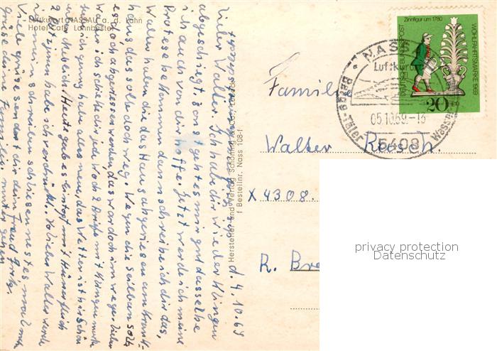 73828642 alte Postkarte Nassau Lahn Hotel Cafe Lahnbastei postalisch gelaufen Erhaltung siehe scans [WerneD78] KatCode: 11110007141091