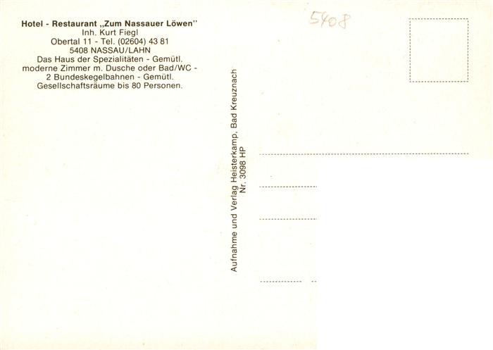 73890815 Nassau Lahn Hotel Restaurant Zum Nassauer Loewen Gastraeume postalisch nicht gelaufen Erhaltung siehe scans [WerneD78] KatCode: 11110007141091