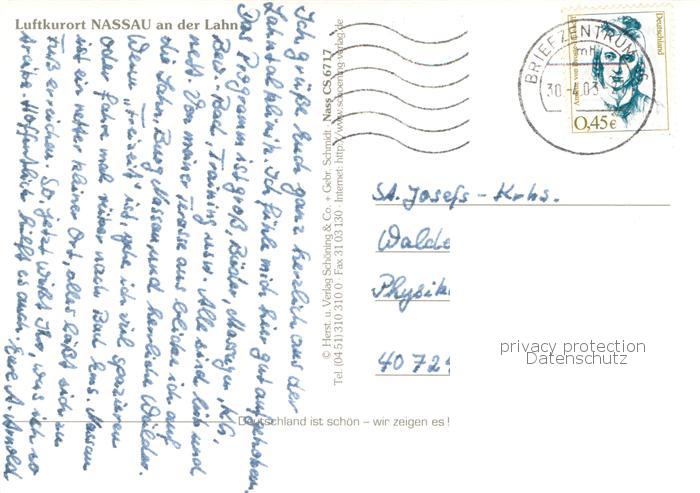 73754481 alte Postkarte Nassau Lahn Luftkurort an der Lahn postalisch gelaufen Fliegeraufnahme Erhaltung siehe scans [FriedD77] KatCode: 11110007141091