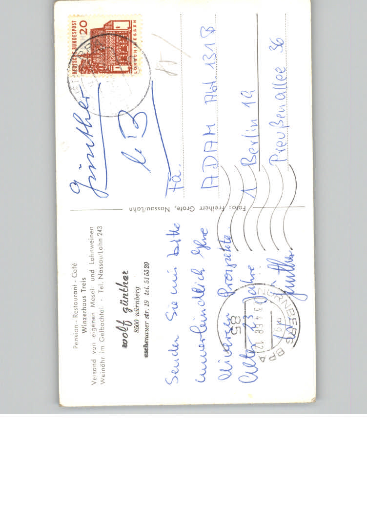 31168271 Nassau Lahn Pension Restaurant Cafe Winzerhaus Treis postalisch nicht gelaufen KatCode: 11110007141091