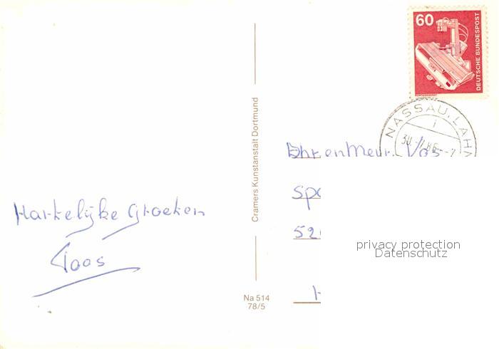 72865081 alte Postkarte Nassau Lahn Schloss Rathaus Lahnpartie Anlagen postalisch gelaufen Erhaltung siehe scans [LiesaD40] KatCode: 11110007141091