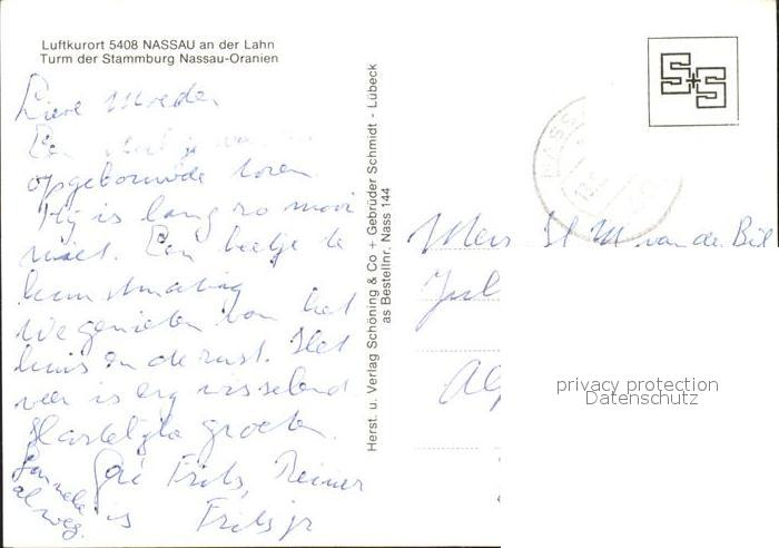 72223467 alte Postkarte Nassau Lahn Turm Stammburg Nassau-Oranien postalisch gelaufen Erhaltung siehe scans KatCode: 11110007141091