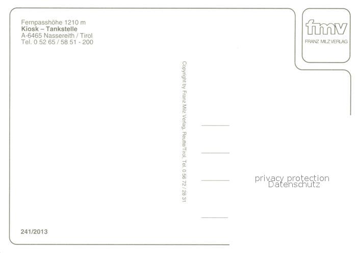 73043172 Nassereith Fernpass Hotel Fernpasshoehe Alpenpass Bergsee Wasserspiegelung Murmeltier postalisch nicht gelaufen Erhaltung siehe scans [FriedD77] KatCode: 11390334070212