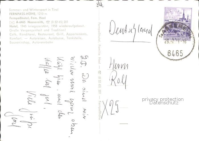 71907385 alte Postkarte Nassereith Fernpass-Hotel postalisch gelaufen Erhaltung siehe scans KatCode: 11390334070212