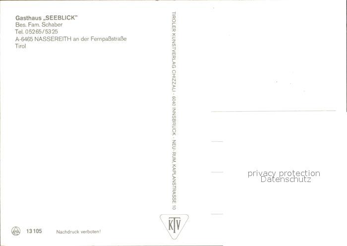 72266395 Nassereith Gasthaus Seeblick postalisch nicht gelaufen Erhaltung siehe scans KatCode: 11390334070212
