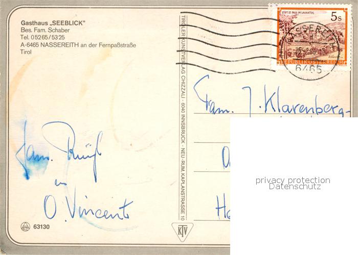 12975316 alte Postkarte Nassereith Gasthof Seeblick postalisch gelaufen Erhaltung siehe scans [NatalD47] KatCode: 11390334070212